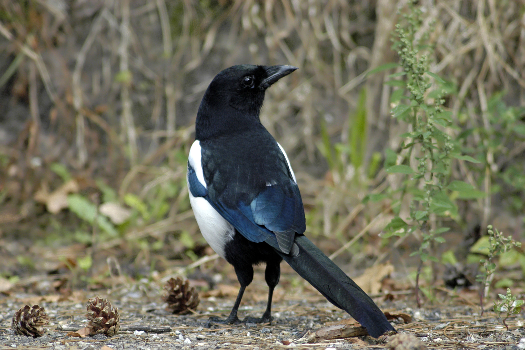 Ihr glänzendes schwarz-weisses Federkleid und ein langer stufiger Schwanz.