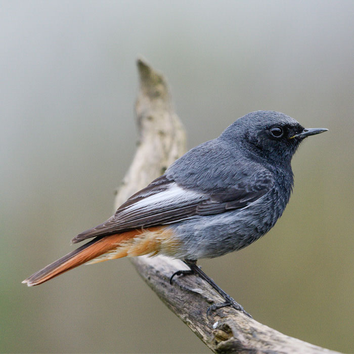 Auffällig ist sein rostroter Schwanz. Das Zittern des Schwanzes und das Knicksen in den Fußgelenken sind für Rotschwänze charakteristisch.