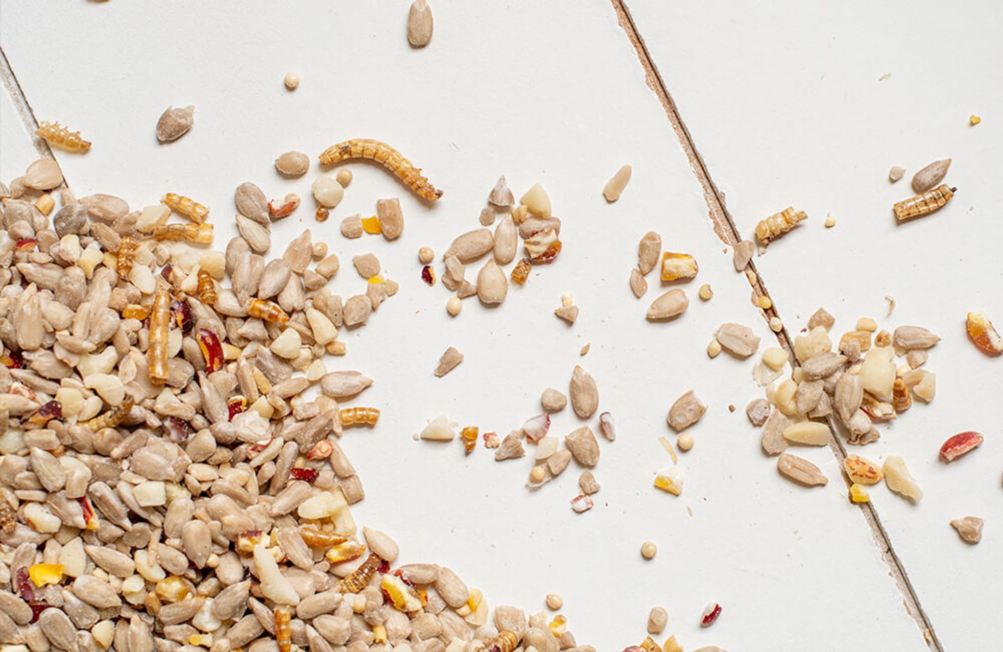 Zum Verfüttern eigenen sich am besten Fettprodukte oder energiehaltige Saatmischungen, wie unsere Energiereichen Samen Deluxe.